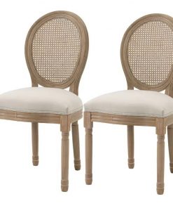 Set of 2 Vintage Upholstered Armless Rattan Back Dining Chairs Beige White