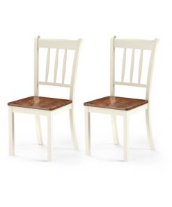 Set of 2 Solid Wood White Mission Style Armless Dining Chair with Brown Seat