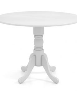Round Solid Wood Kitchen Dining Table in White Farmhouse Wooden Finish