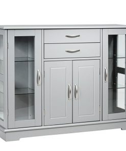 Grey Wood Buffet Sideboard Cabinet with Glass Display Doors