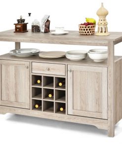 Grey Wood Sideboard Buffet Server Cabinet with Wine Rack and Storage Shelf