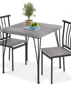 Modern 3-Piece Metal Frame Dining Set with Grey Wood Top Table and 2 Chairs