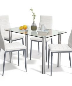 Modern 5-Piece Dining Set with Glass Top Table and 4 White PVC Leather Chairs