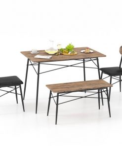 Modern 4-Piece Dining Set with Wood Top Table 2 Chairs and Bench