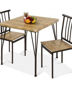 Modern 3-Piece Metal Frame Dining Set with Wood Top Table and 2 Chairs