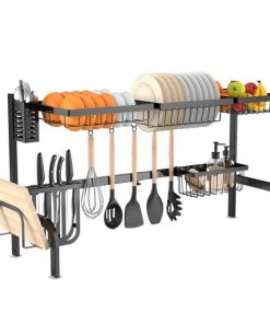2 Tier Black Steel Adjustable Over the Sink Dish Drying Rack