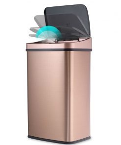 Gold Copper 13-Gallon Stainless Steel Kitchen Trash Can with Motion Sensor Lid