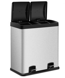 Large 16-Gallon Dual Compartment Kitchen Trash Can with Foot Pedal Open