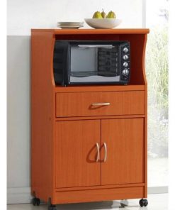 Mahogany Wood Finish Kitchen Cabinet Microwave Cart