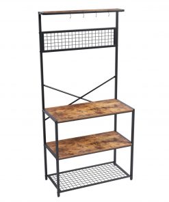 Modern Industrial Metal Wood Bakers Rack Kitchen Storage Shelf