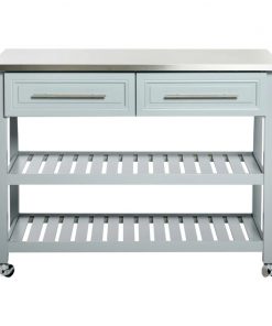 Light Gray Rolling Kitchen Island 2 Drawers Storage with Stainless Steel Top