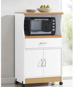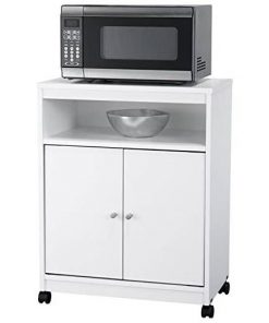 White Kitchen Utility Cabinet Microwave Cart with Caster Wheels