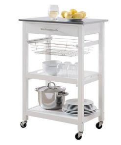White Stainless Steel Top Kitchen Cart with Drawer and Storage Shelves