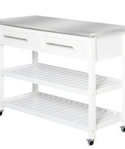 White Rolling Kitchen Island 2 Drawers Storage with Stainless Steel Top