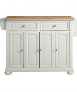 White Kitchen Island Storage Cabinet with Solid Wood Top