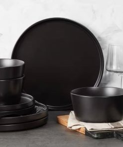 16-Piece Stoneware Dinnerware Set in Matte Black – Service for 4