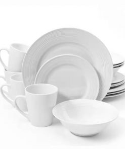 16-Piece White Ceramic Dinnerware Set w/ Bowls Plates and Mugs – Service for 4