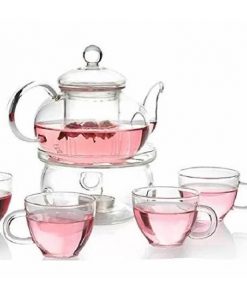 6-Piece Glass Tea Pot Set with 4 Cups Teapot Warmer and Infuser