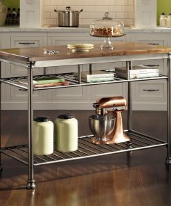 Classic French Style Hardwood Butcher Block Top Metal Kitchen Utility Table