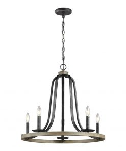 Rustic 5 Light Dimmable Farm Home Circle Metal Chandelier Oak Finish