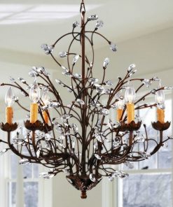 Antique Bronze 6-light Crystal and Iron Chandelier