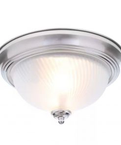 Round 11-inch Brushed Nickel Flush Mount Ceiling Light with Frosted Glass Shade