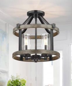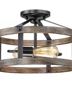Round 12-inch Ceiling Light with Rattan Bamboo Drum Shade – Semi Flush Mount