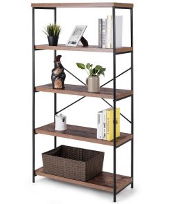 Industrial Metal Wood 5-Tier Bookcase Storage Rack Book Shelf