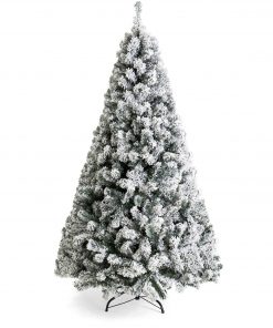 7.5 Foot Easy Set Up Snow Flocked Faux Pine Christmas Tree with Metal Stand