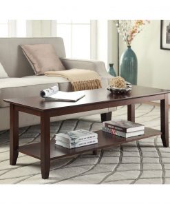 Espresso Wood Grain Coffee Table with Bottom Shelf