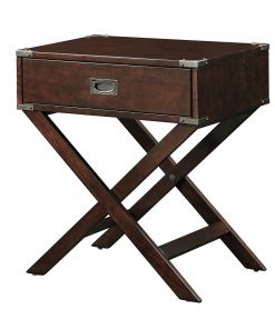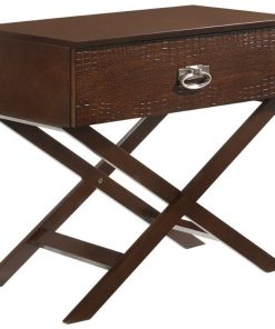 Cappuccino Brown Wood 1-Drawer End Table Nightstand with X Legs