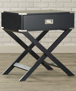 Dark Grey Black 1-Drawer End Table Nightstand with Modern Classic X Style Legs