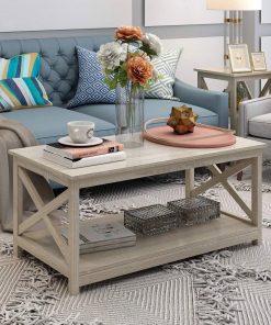 Contemporary Farmhouse Coffee Table in Rustic White Oak Wood Finish