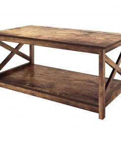 Contemporary 2-Tier Farmhouse Coffee Table in Rustic Wood Finish