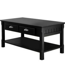 Country Style Black Wood Coffee Table with 2 Storage Drawers