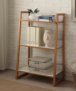 Modern Bookcase with 3 Shelves in Bamboo/White Finish