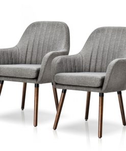 Set of 2 Retro Grey Linen Upholstered Accent Chair with Stylish Wood Legs