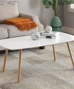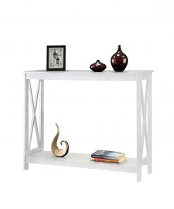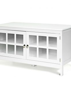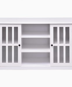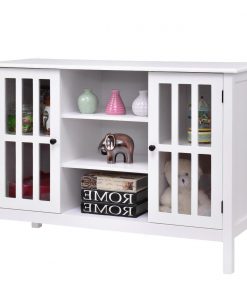 White Wood Sofa Table Console Cabinet with Tempered Glass Panel Doors