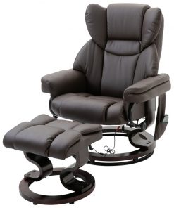 Adjustable Brown Faux Leather Remote Massage Recliner Chair w/ Ottoman