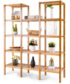 Bamboo Wood 5-Tier Versatile Bookcase Plant Stand Storage Rack