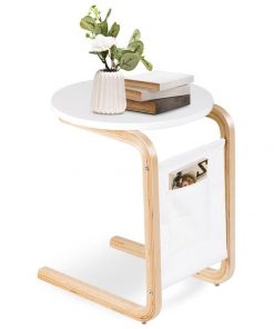 Birch Wood White Side Table TV Tray with Storage Bag