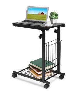 Black Multipurpose Adjustable Height TV Tray Sofa Table on Wheels
