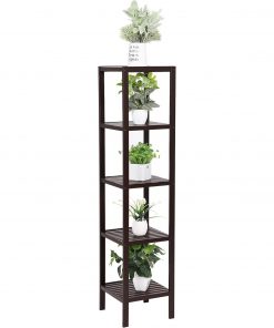 Brown Bamboo Wood 4-Shelf Versatile Storage Unit Rack Narrow Bookcase
