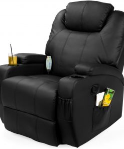 Black Swivel Heat & Massage Recliner Chair 5 Modes Remote Control