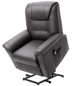 Brown Electric PU Leather Power Lift Chair with Remote Control & Side Pockets