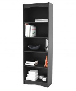 Contemporary Black Bookcase with 5 Shelves and Curved Accents