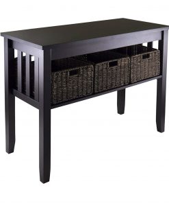 Espresso 2 Tier Entryway Hall Console Table with 3 Storage Baskets