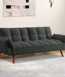 Mid-Century Modern Sofa Bed in Dark Grey Linen Polyester Tufted Upholstery