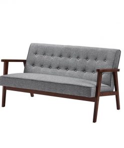 Mid-Century Modern 2-Seat Loveseat Sofa Couch Wood Frame Grey Button Tufted