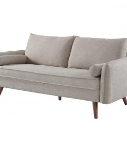 Modern Couch Beige Upholstered Sofa with with Mid-Century Style Wood Legs